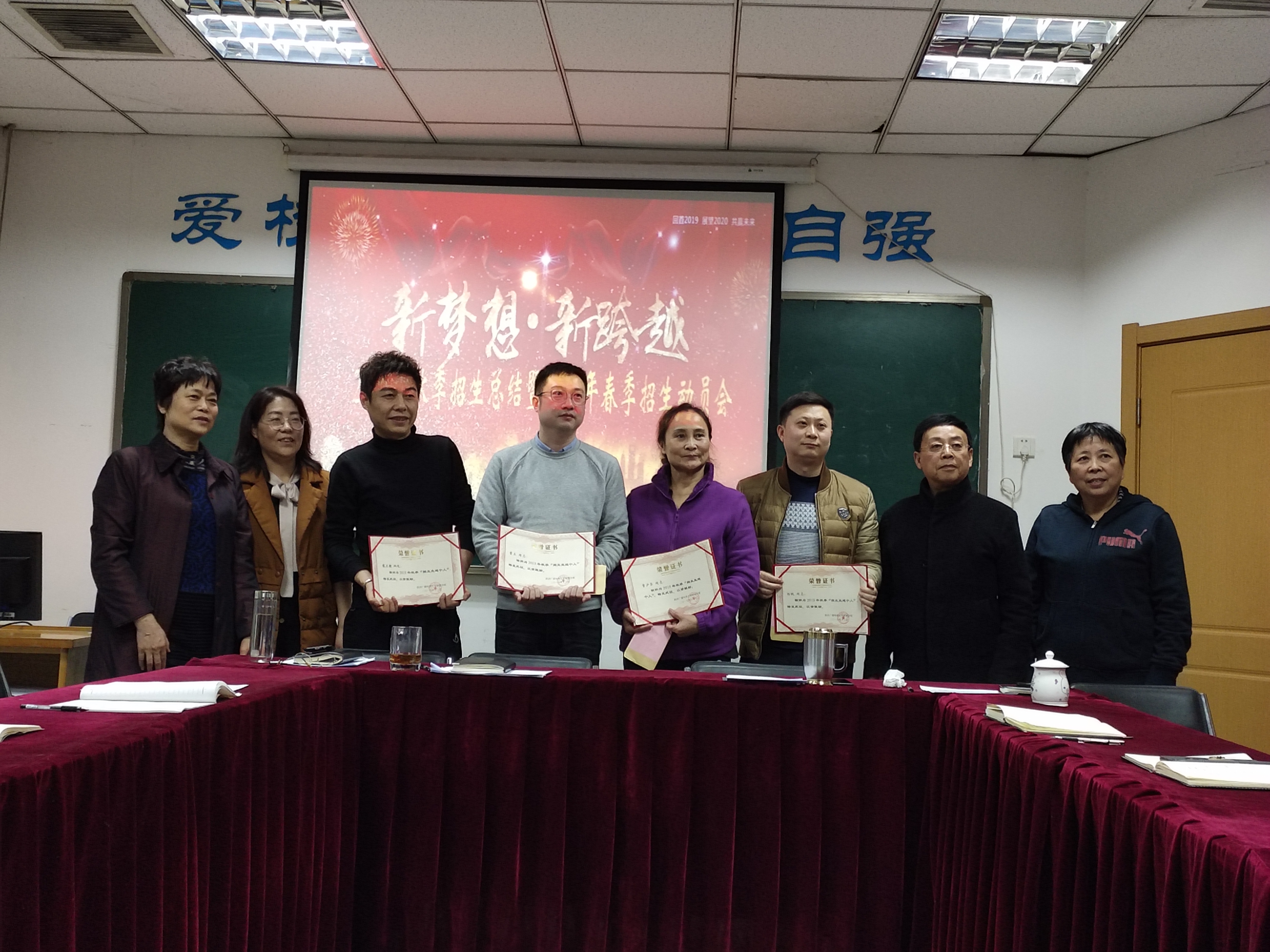 随后,仝宝珠副校长宣读了“陕西电大新城分校关于表彰奖励2019年秋季“招生先进个人”的决定”,校领导为招生先进个人颁发了荣誉证书以及奖金,同时招生先进个人在大会上就各自招生工作的基本情况、宣传策略、工作方式、服务理念、招生经验、面临困难以及未来工作打算进行交流总结。会上各部门主管领导均积极表态,提出了下一步招生工作的思路和具体措施,承诺全力做好2020春季招生工作,圆满完成招生任务。俞校长对与会者的发言做了精彩的点评,勉励大家以踏实的工作方式、积极的工作态度、创新的工作理念做好我校的招生宣传工作。