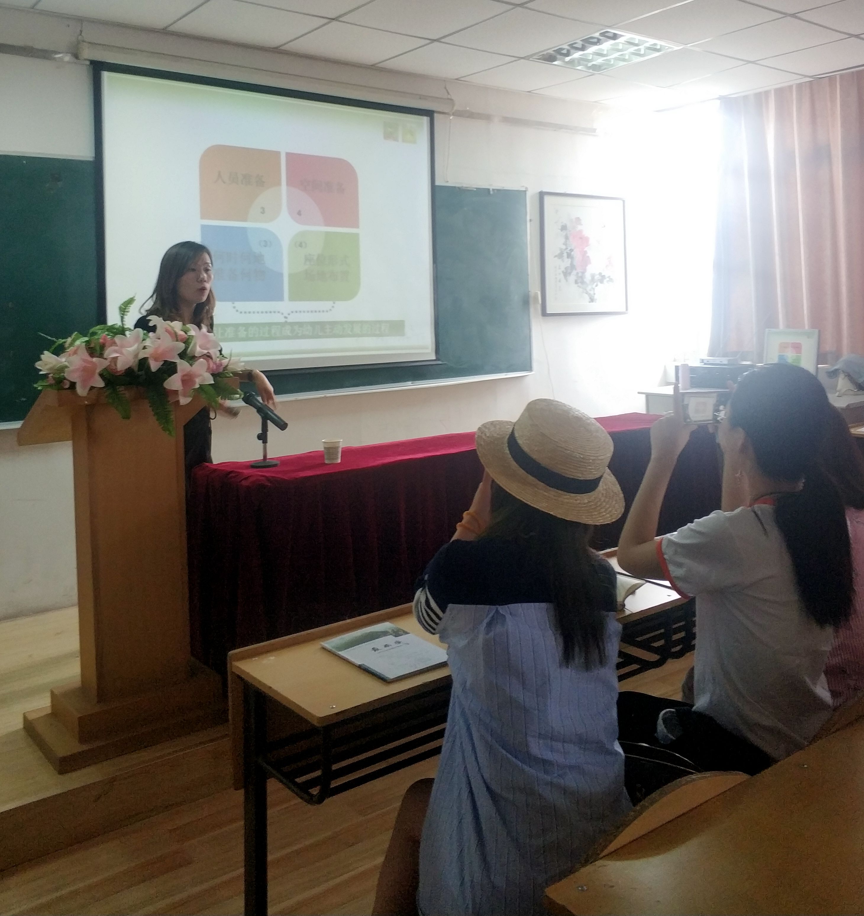系统阐述了主题活动的选择、设计、实施、方法等,并穿插了大量的实用性很强的实践案例,力求做到学习与运用相统一、理论与实践相结合。整场讲座内容详实、重点突出,具有很强的指导性和可操作性。彭老师深入浅出的授课风格也深深吸引了全体学员,现场氛围异常热烈。